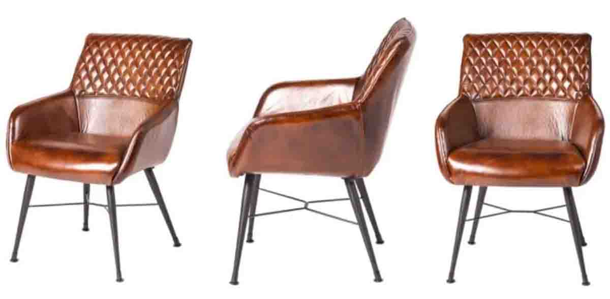 Brown Leather Chairs with Wooden Armrests
